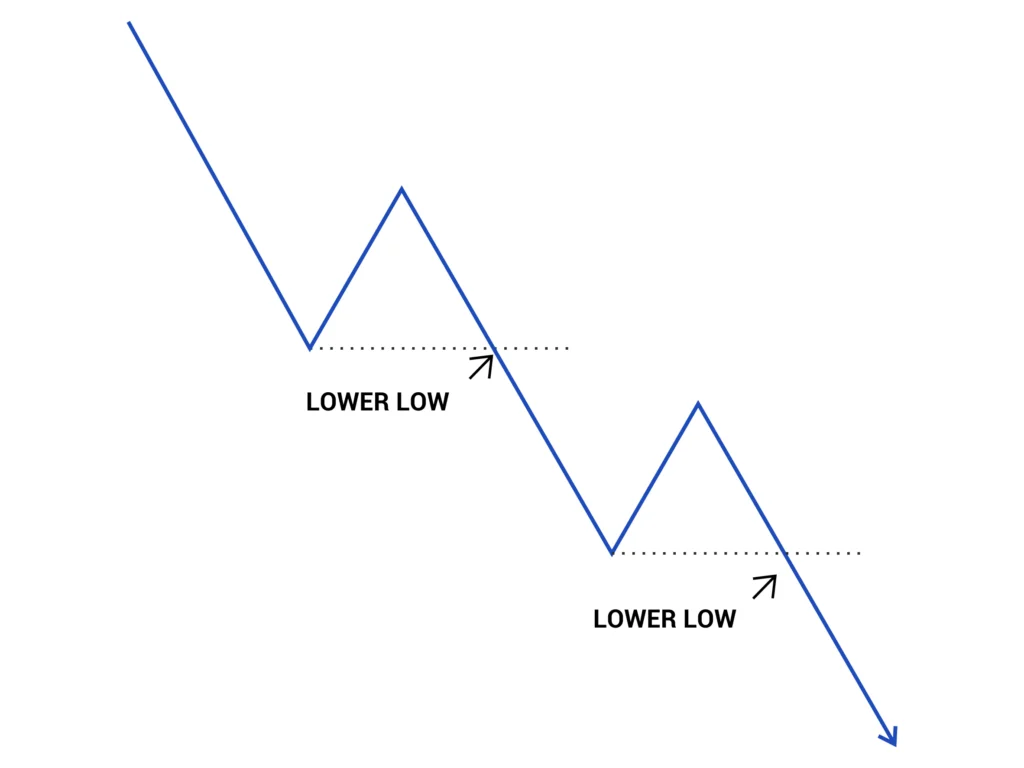 Likewise, on the way down the last and lowest pull back high is the defining level for an intact downtrend. As long as the series of lower highs is unbroken, then we are in a downtrend. The last lower high defines the exact price level, where the trend ends. The previous low is a support point in the downtrend. It may hold and form, for example, a double bottom chart formation. Or it may give way, and the trend is therefore intact and continuing. All this information is precious to technical traders. They will use it to make a trading plan for a trade.