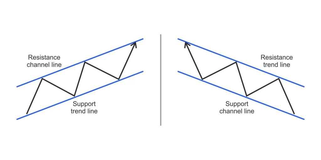 The volume also often decreases when the channel is formed and should increase strongly as the price breaks out.