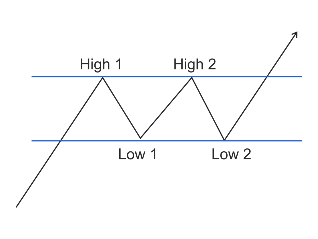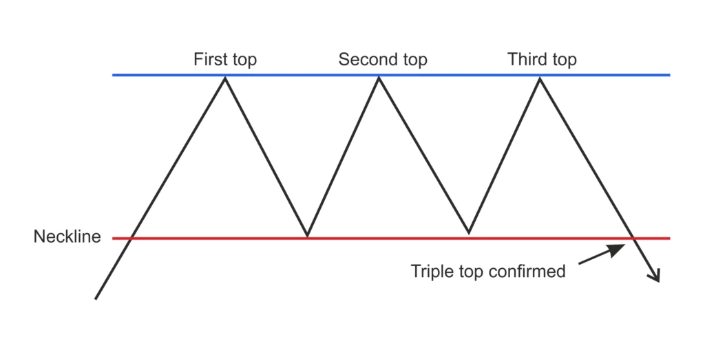 Less frequently, we get triple tops and triple bottoms. These are the same except they have three tops or bottoms instead of two. The rules and are the same.