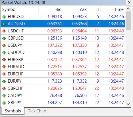 You can structure the Market Watch in any way you see fit. Change the symbols’ order by dragging them up or down, and you can even hide unnecessary symbols. Additionally, you can customise your Market Watch information to show the last quote time, spread, or high/low information.