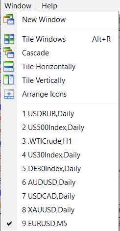 Symbols – allows you to manage the list of symbols in your Market Watch.